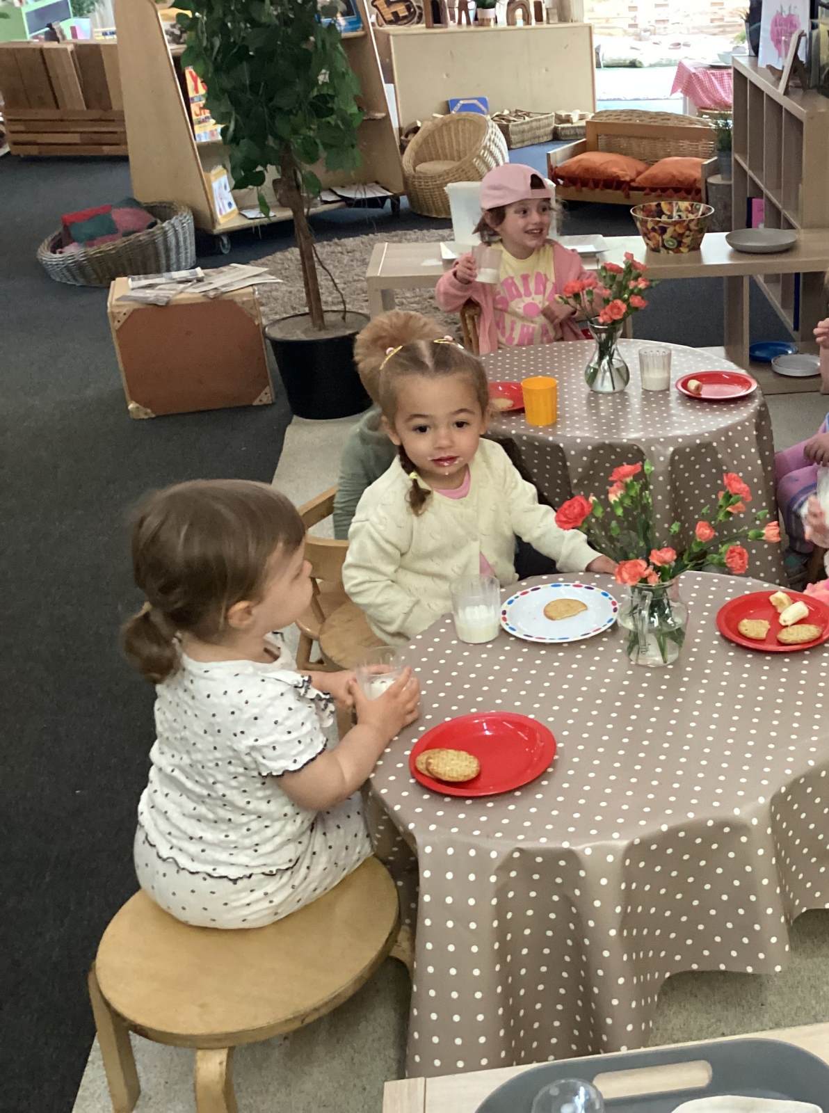 Snacks (including milk and water) are available for the children to have throughout the session. The children are encouraged to get their own snack, sit down to eat and drink with their peers and then wash up their dishes and beakers.